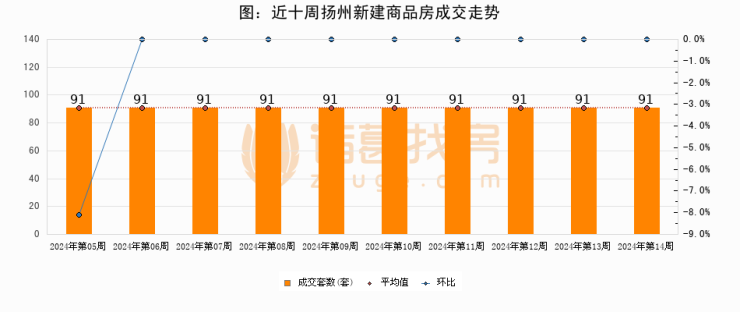 进入2024年第13周(03月25日-03月31日),扬州新建商品房成交91套,较上周持平