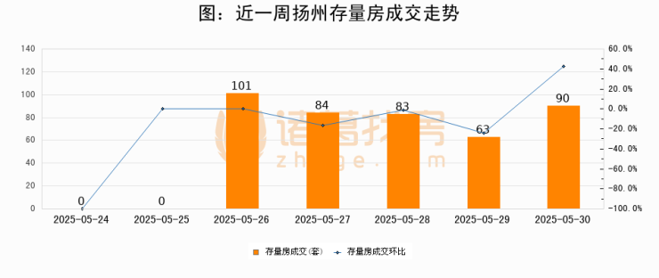 从存量房来看,2025年05月30日扬州存量房单日成交90套,比昨日增加27套,环比上涨42.9%。从近一周存量房成交来看,扬州存量房日均成交套数为60套,05月30日单日成交90套,高于近一周平均水平50%。