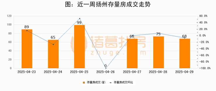 从存量房来看,2025年04月29日扬州存量房单日成交68套,比昨日减少5套,环比下降6.9%。从近一周存量房成交来看,扬州存量房日均成交套数为66套,04月29日单日成交68套,高于近一周平均水平3%。