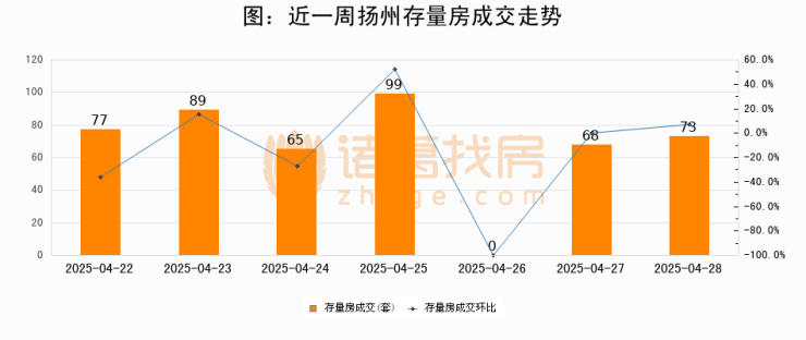 从存量房来看,2025年04月28日扬州存量房单日成交73套,比昨日增加5套,环比上涨7.3%。从近一周存量房成交来看,扬州存量房日均成交套数为67套,04月28日单日成交73套,高于近一周平均水平9%。