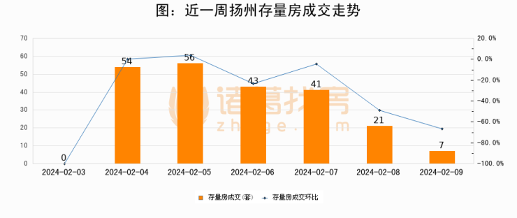 从存量房来看,2024年02月09日扬州存量房单日成交7套,比昨日减少14套,环比下降66.7%。从近一周存量房成交来看,扬州存量房日均成交套数为31套,02月09日单日成交7套,低于近一周平均水平77.4%。